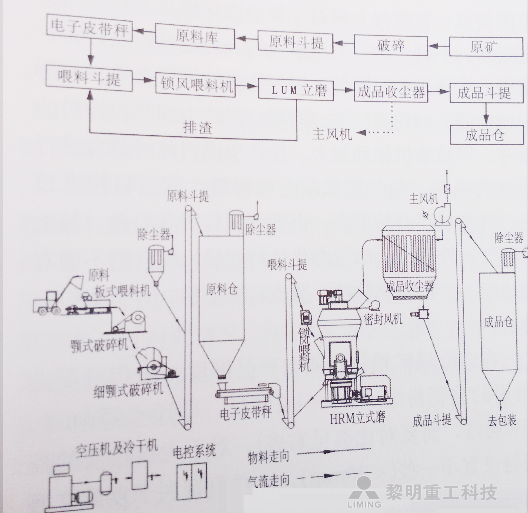 河南黎明重工LUM超細立式磨粉機加工工藝流程:
